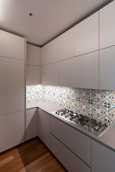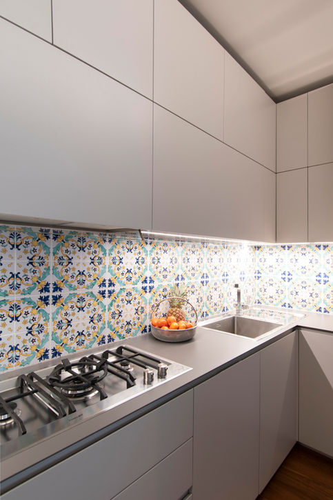 The new layout of the living room brought a lot of natural light in the public spaces. The kitchen is a niche with beautiful hand made ceramics from Salerno that pay respect to the owner's origins.